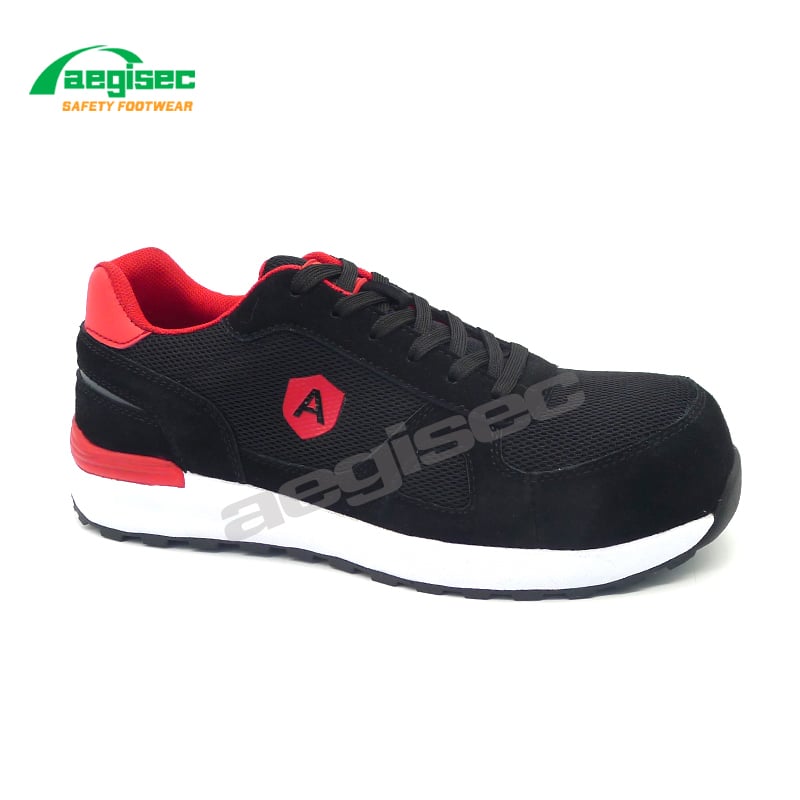 AEGISEC lightweight safety sneaker has a shock absorption rubber outsole that offers great grip, while also resisting oil, chemical. It features breathable suede leather upper, metal free composite toe cap.