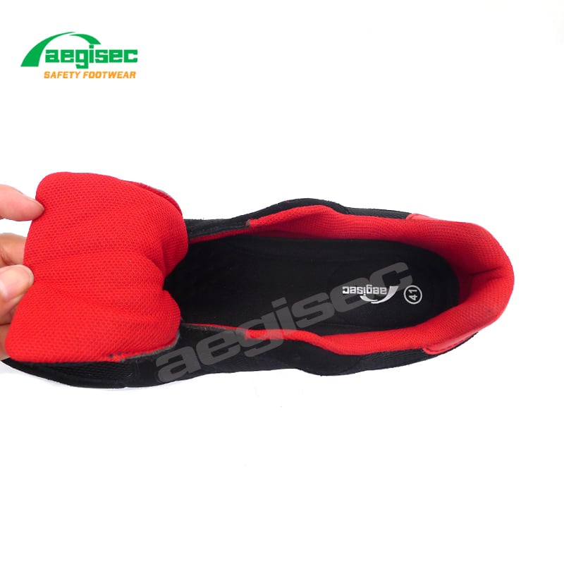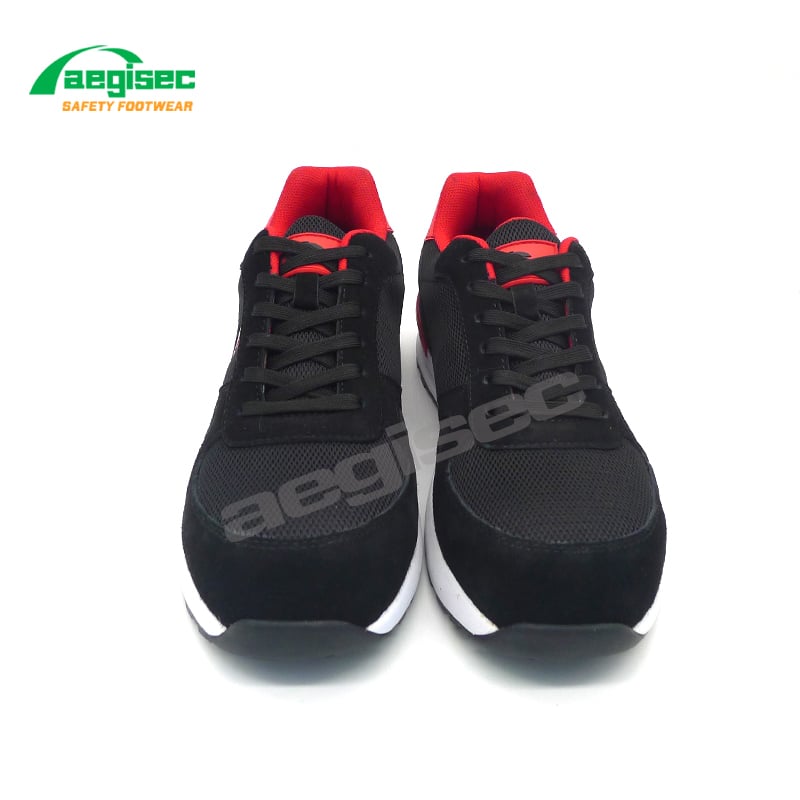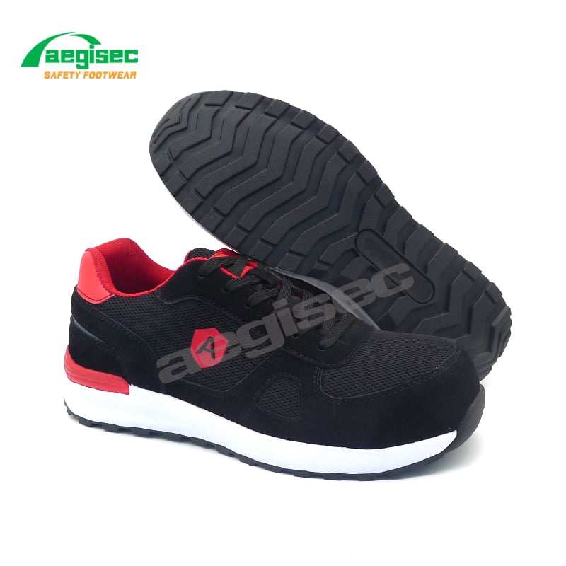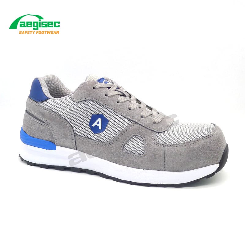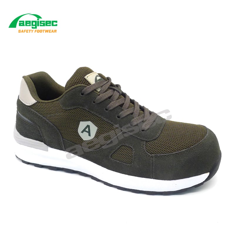 AEGISEC lightweight safety sneaker has a shock absorption rubber outsole that offers great grip, while also resisting oil, chemical. It features breathable suede leather upper, metal free composite toe cap.