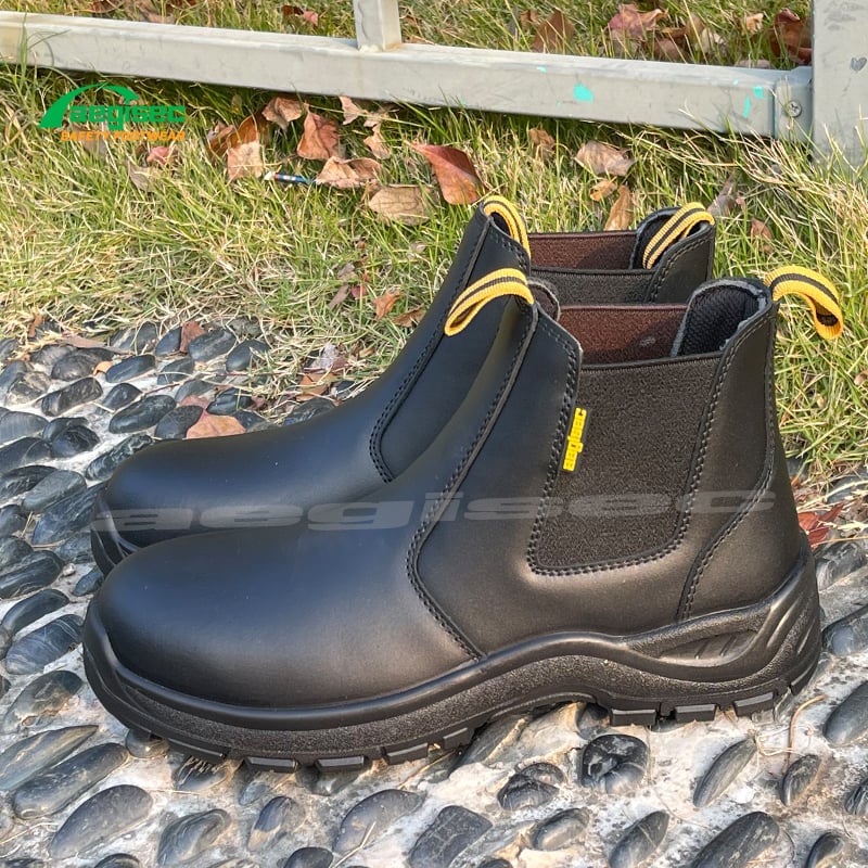 AEGISEC work boots is designing for harsh working environments such as mining, welding, smelter and construction. With water resistant, breathable nubuck leather for comfort and durability. The slip-on safety shoes features a steel toe cap and puncture resistant steel plate.
