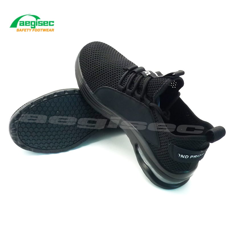 AEGISEC sport safety shoes are with breathable recycled fly knit leather. With the slip-resistant PU outsole and steel toe cap, this anti static safety shoe offers reliable protection for light applications in dry environments.