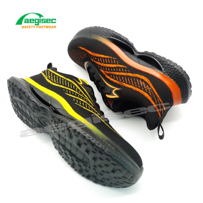 AEGISEC sport safety shoes are with breathable recycled fly knit leather. With the slip-resistant EVA outsole, anti impact steel toe cap, this anti static safety shoe offers reliable protection for light applications in dry environments.