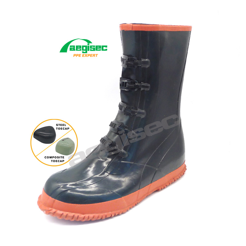AEGISEC wellington work boots features with water resistant rubber upper and steel toe cap. The slip resistant rubber outsole provides good grip in most surfaces. This boot is perfect for animal husbandry, chemical and agriculture industries.