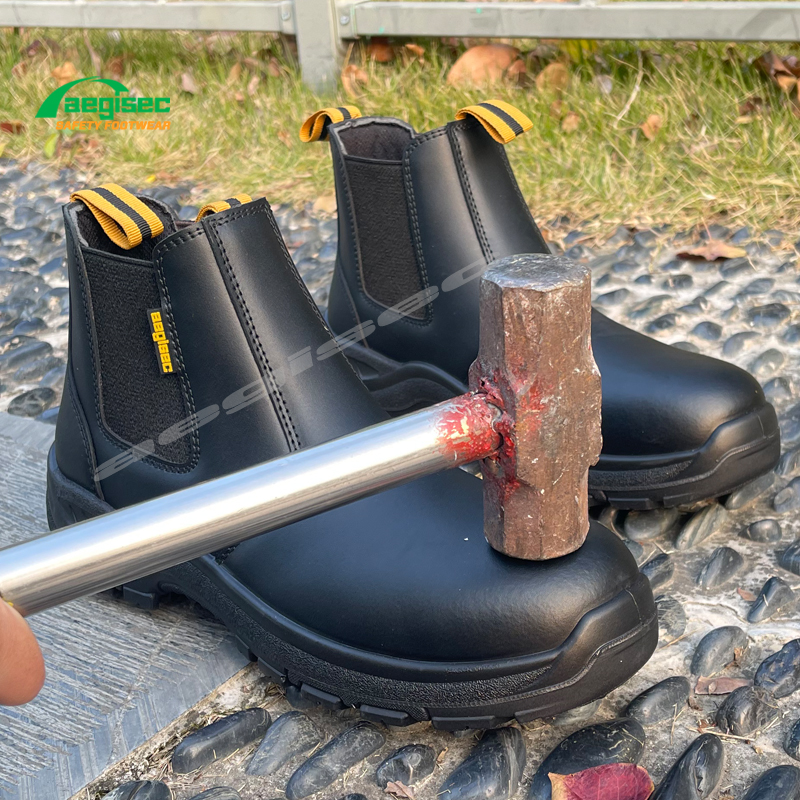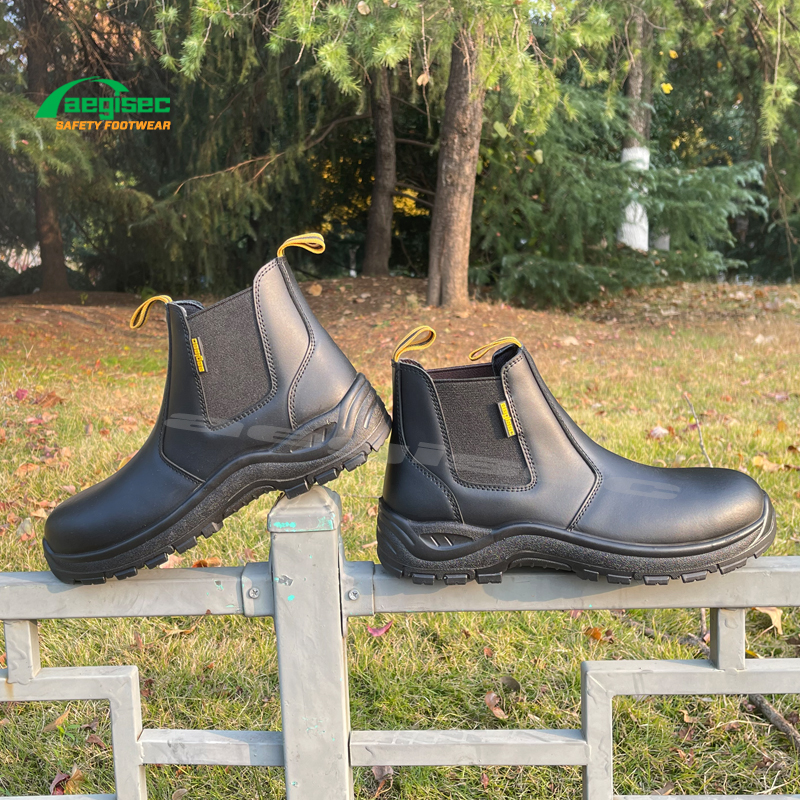AEGISEC work boots is designing for harsh working environments such as mining, welding, smelter and construction. With water resistant, breathable nubuck leather for comfort and durability. The slip-on safety shoes features a steel toe cap and puncture resistant steel plate.