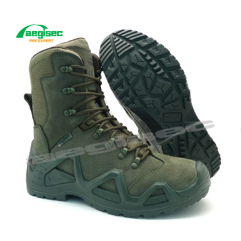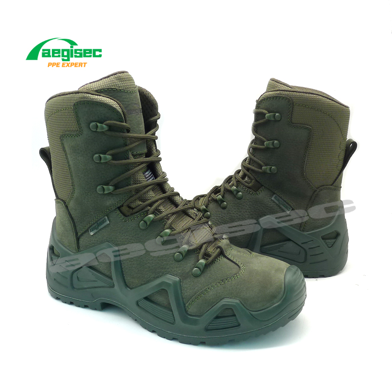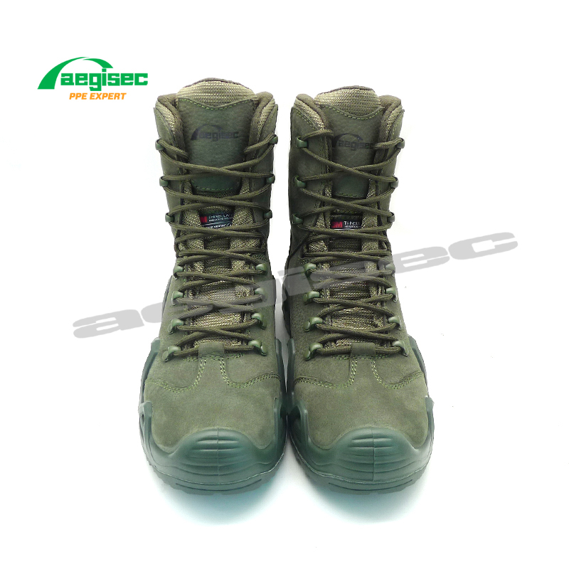 أحذية AEGISEC العسكرية المقاومة للماء مناسبة للعمل في البيئات الممطرة أو الثلجية أو الغنية بالسوائل، مصممة من جلد نوبوك مقاوم للتمزق. البطانة مصنوعة من شبكة احترافية تمتص الرطوبة مع غشاء مقاوم للماء. تتميز بأصابع القدم المصهورة بالحرارة ونعل أوسط من مادة كيفلر مقاومة للثقب. تضمن النعال المطاطية المقاومة للتآكل والمضادة للانزلاق أقصى قدر من الثبات على أي سطح.