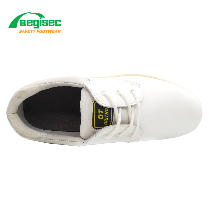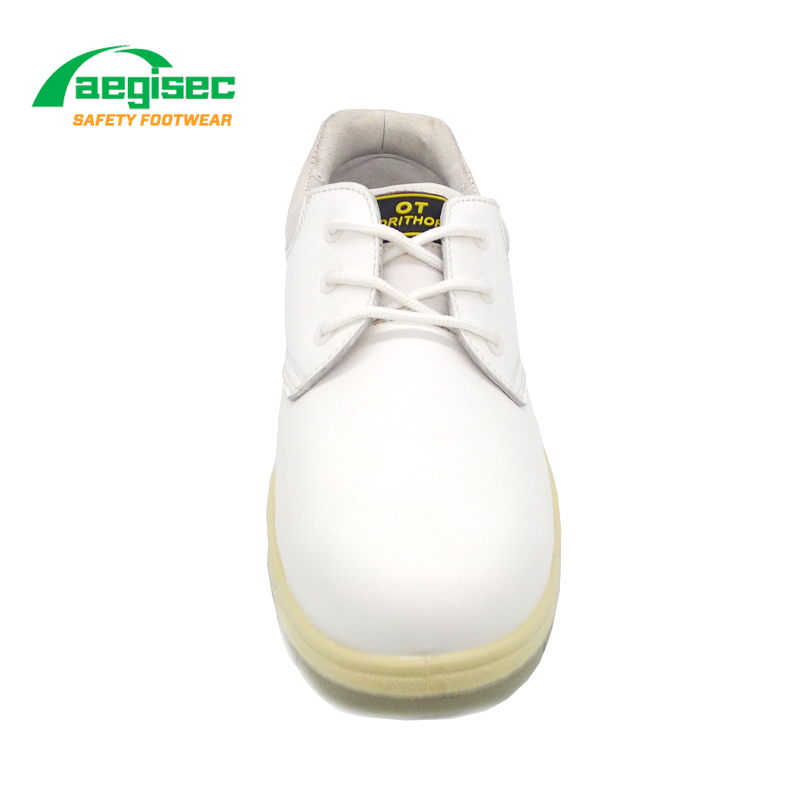 حذاء عمل طبي من الجلد من AEGISEC مصنوع من الفولاذ المقاوم للانزلاق ومقاوم للمواد الكيميائية S3010