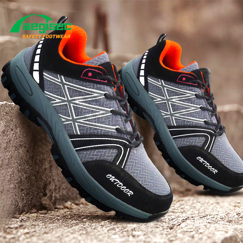 AEGISEC breathable sandwich mesh fabric sport safety shoes are with the anti impact steel toe cap and puncture-resistant kevlar midsole. The rubber outsole grants exceptional slip resistance, while resisting oil, fuel, chemicals, and extreme temperatures.