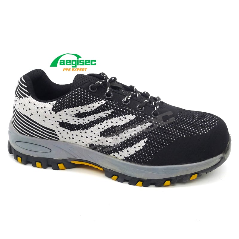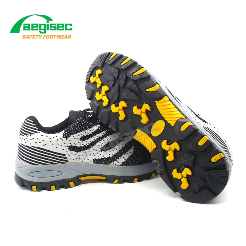 AEGISEC breathable fly knit sport safety shoes are with the anti impact steel toe cap and steel midsole. The rubber outsole grants exceptional slip resistance, while resisting oil, fuel, chemicals, and extreme temperatures.