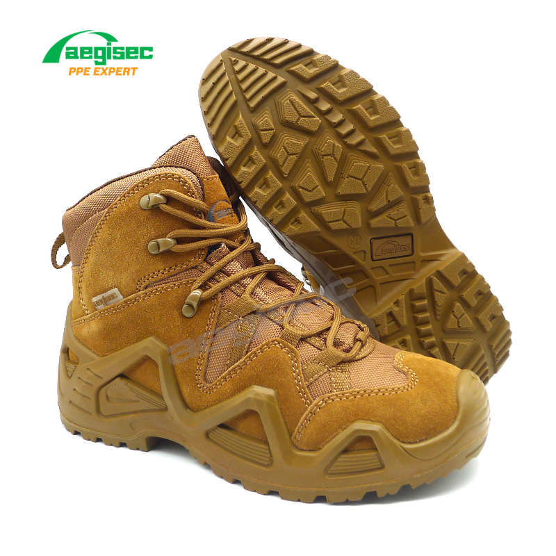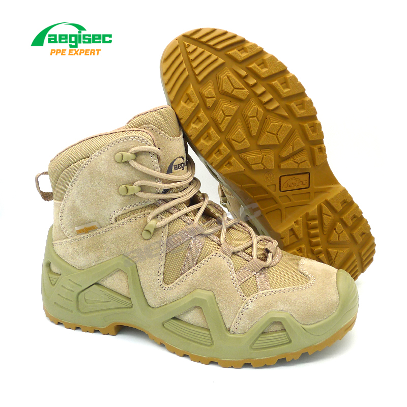 AEGISEC-Militärstiefel sind mit reißfestem Rindsveloursleder und einer durchtrittsicheren Zwischensohle ausgestattet. Die rutschfeste SRC-Gummilaufsohle sorgt für festen Halt auf den meisten Oberflächen. Die Stiefel sind für Polizei, Spezialeinheiten, Mitarbeiter der öffentlichen Sicherheit und Soldaten konzipiert.