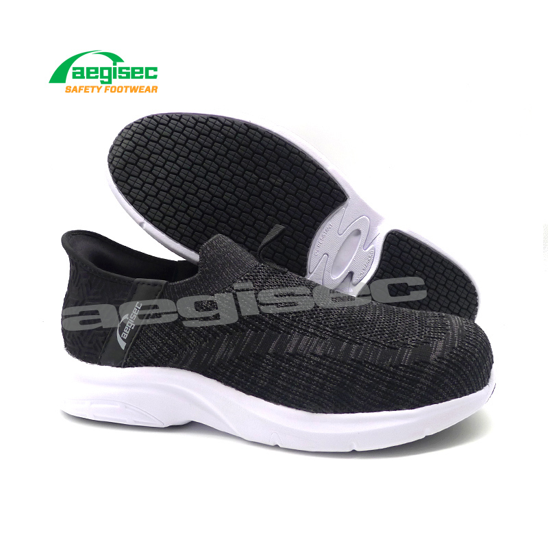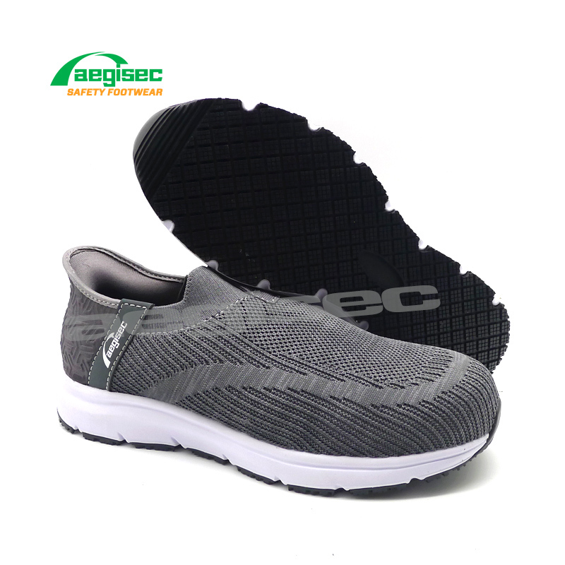 Die atmungsaktiven Flyknit-Sicherheitsschuhe von AEGISEC sind mit einer stoßfesten Zehenkappe aus Stahl ausgestattet. Die Gummilaufsohle bietet außergewöhnliche Rutschfestigkeit und ist beständig gegen Öl, Kraftstoff und Chemikalien.