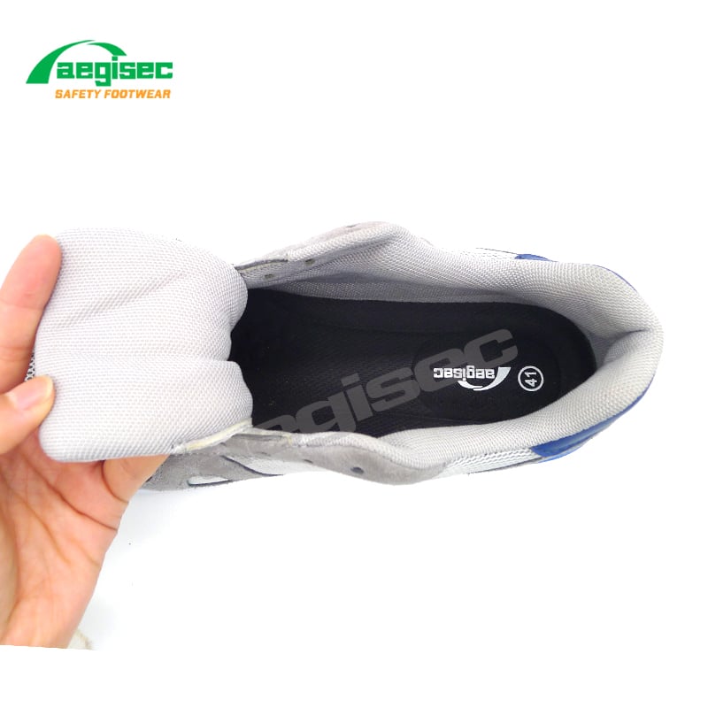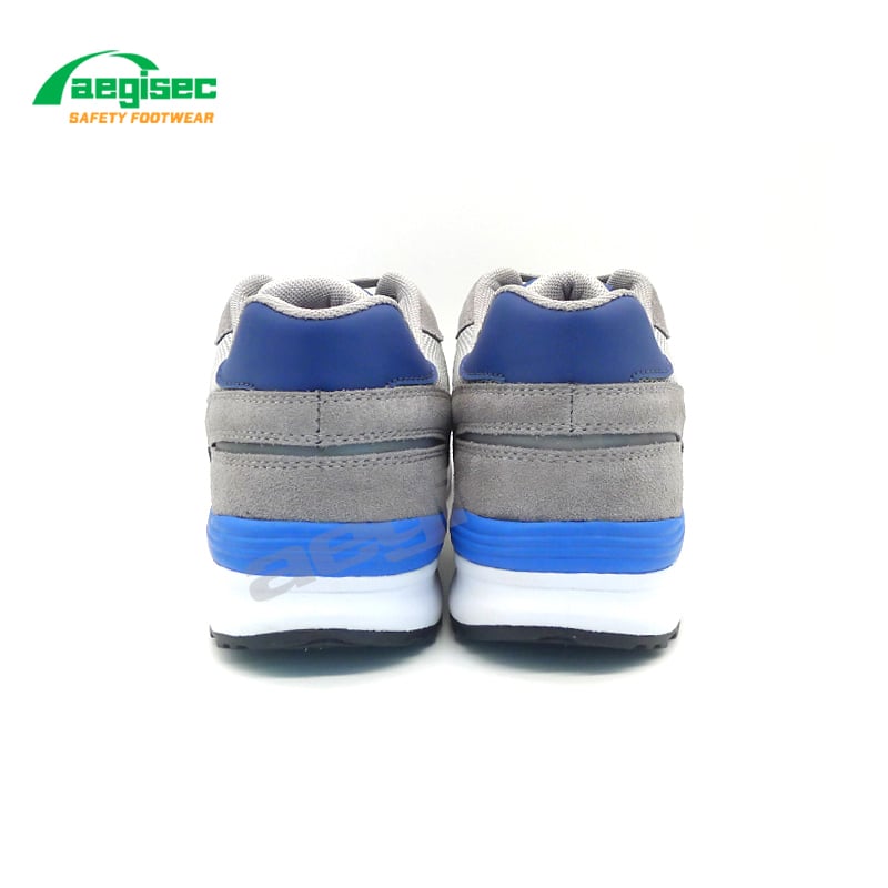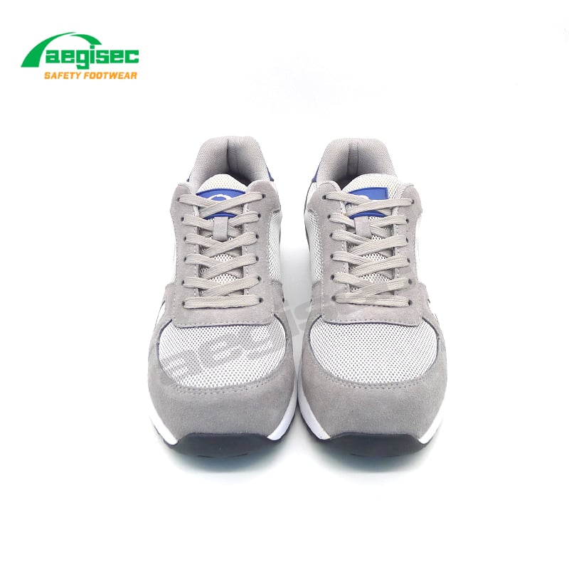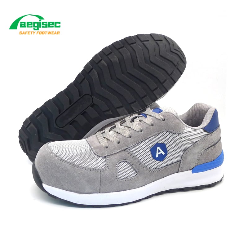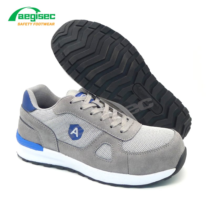 AEGISEC lightweight safety sneaker has a shock absorption rubber outsole that offers great grip, while also resisting oil, chemical. It features breathable suede leather upper, metal free composite toe cap.