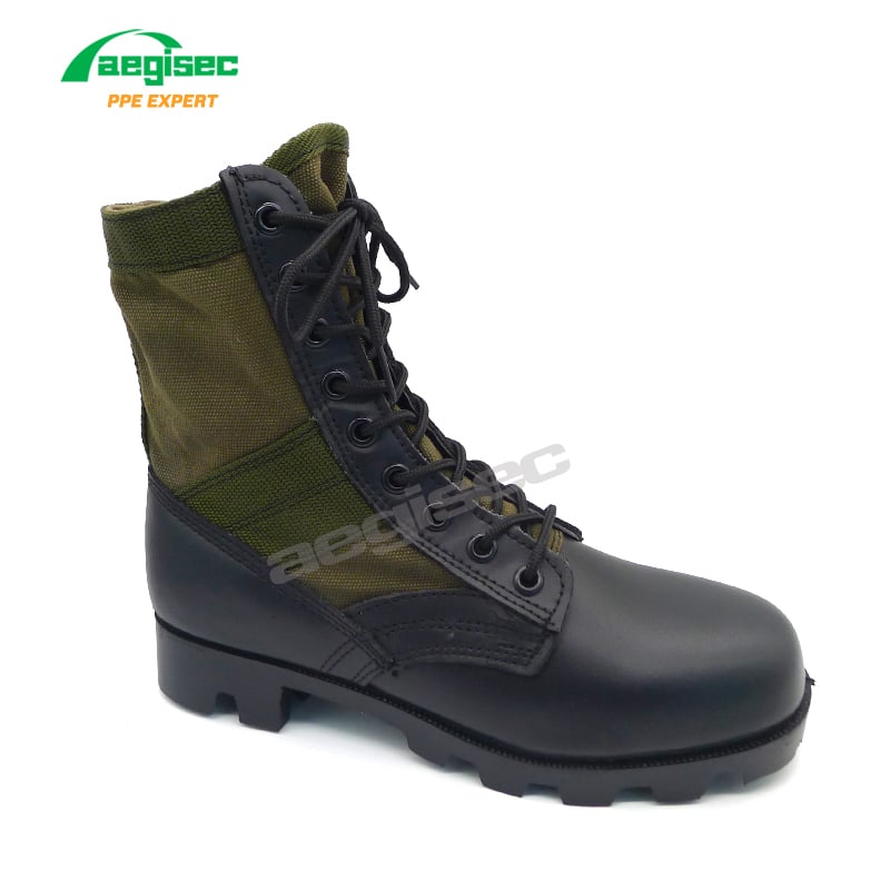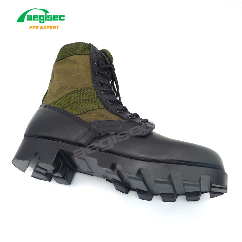 Las botas militares AEGISEC están equipadas con cuero vacuno resistente a desgarros y entresuela resistente a perforaciones. La suela exterior de goma antideslizante SRC garantiza un agarre firme en la mayoría de las superficies. Las botas están diseñadas para policías, fuerzas especiales, trabajadores de seguridad pública y soldados.