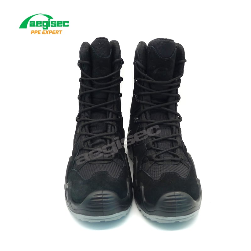 Botas de combate negras con cordones resistentes al aceite antideslizantes con aislamiento de gamuza de vaca AEGISEC M28243BH