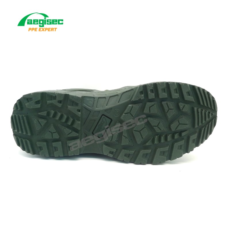 Los zapatos tácticos AEGISEC tienen una entresuela resistente a perforaciones que brinda una protección sólida contra penetraciones afiladas. La suela exterior de PU antideslizante SR garantiza un agarre firme en superficies resbaladizas y complejas. Los zapatos están diseñados para militares, fuerzas especiales y trabajadores de seguridad pública para entrenamiento y combate.