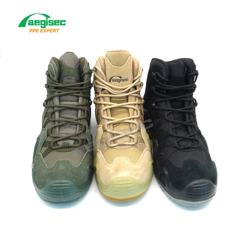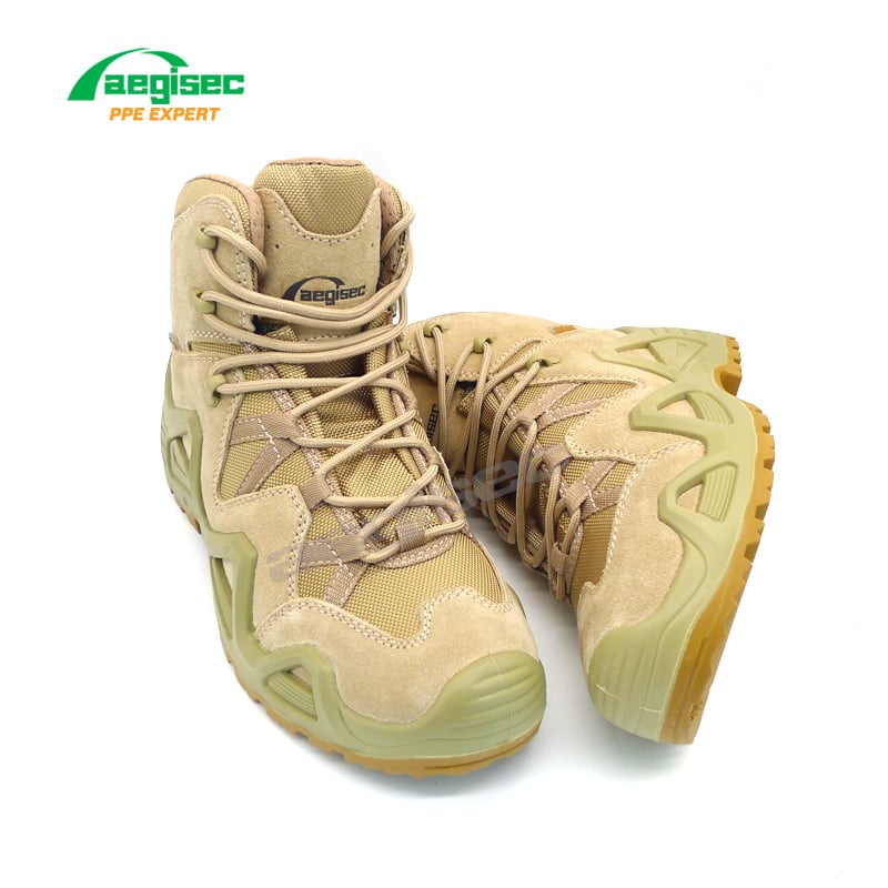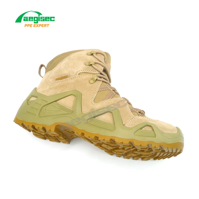 Las botas militares AEGISEC están equipadas con cuero de gamuza de vaca resistente al desgarro y entresuela resistente a perforaciones. La suela exterior de goma antideslizante SRC garantiza un agarre firme en la mayoría de las superficies. Las botas están diseñadas para policías, fuerzas especiales, trabajadores de seguridad pública y soldados.