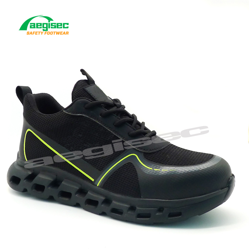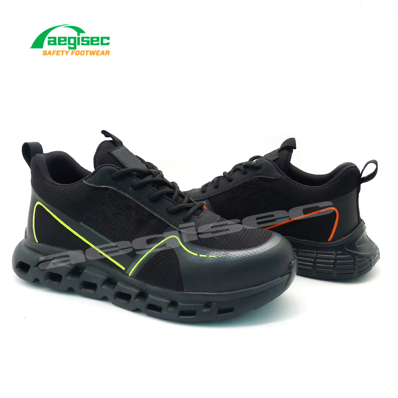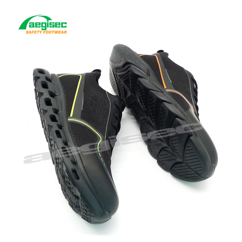 Los zapatos deportivos livianos AEGISEC cuentan con una parte superior transpirable, una entresuela de tela resistente a las perforaciones, una puntera antiimpacto y una plantilla de espuma extraíble. La suela exterior antideslizante SRC es perfecta para las industrias automotriz, de construcción y logística.