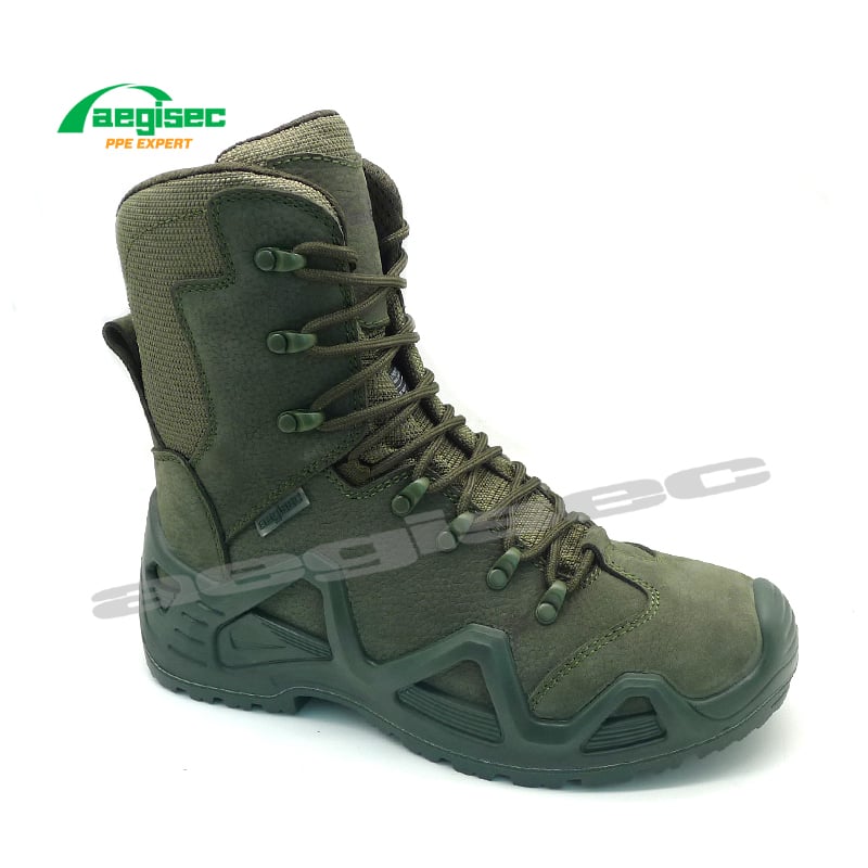 Las botas militares impermeables AEGISEC son adecuadas para entornos de trabajo con lluvia, nieve o líquidos, diseñadas con cuero nobuck resistente al desgarro. El forro está hecho de malla profesional que absorbe la humedad con membrana impermeable. Cuentan con puntera termofusible y entresuela de kevlar resistente a perforaciones. Las suelas de goma antideslizantes y resistentes al desgaste garantizan el máximo agarre en cualquier superficie.