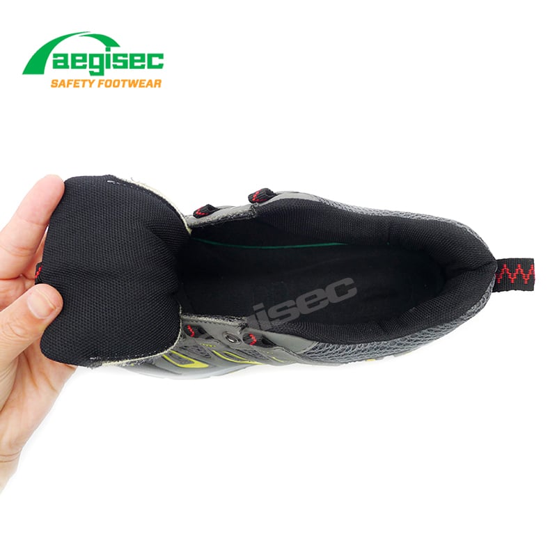 AEGISEC breathable sandwich mesh fabric sport safety shoes are with the anti impact steel toe cap and puncture-resistant kevlar midsole. The rubber outsole grants exceptional slip resistance, while resisting oil, fuel, chemicals, and extreme temperatures.