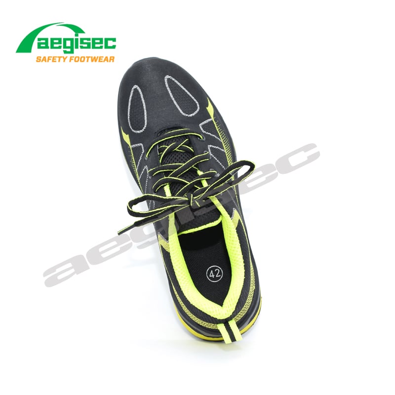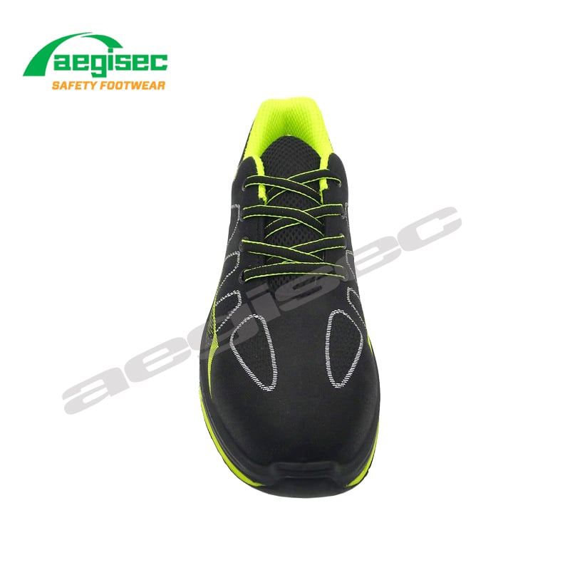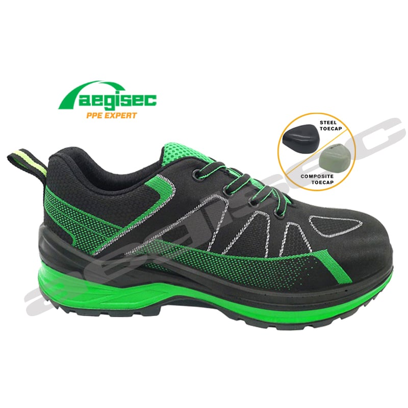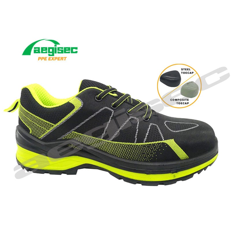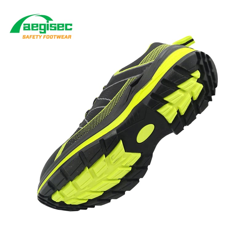 AEGISEC breathable fly knit sport safety shoes are with the anti impact steel toe cap. The rubber outsole grants exceptional slip resistance, while resisting oil, fuel, chemicals, and extreme temperatures.