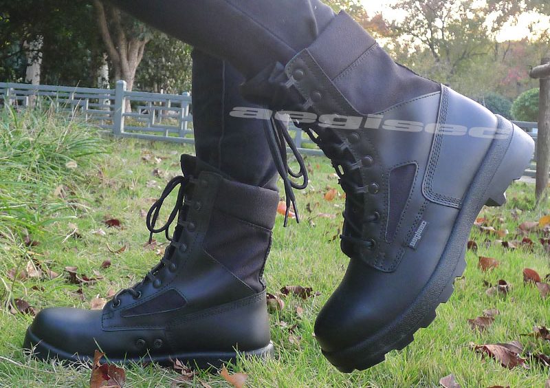 AEGISEC military boots are equipped with breathable cow leather and puncture resistant midsole. The SRC slip resistance rubber outsole ensures a firm grip on most surface. The lace up safety military boots are designed for police, special forces, public safety workers and soldier.