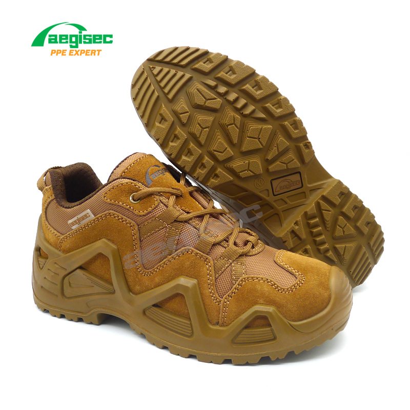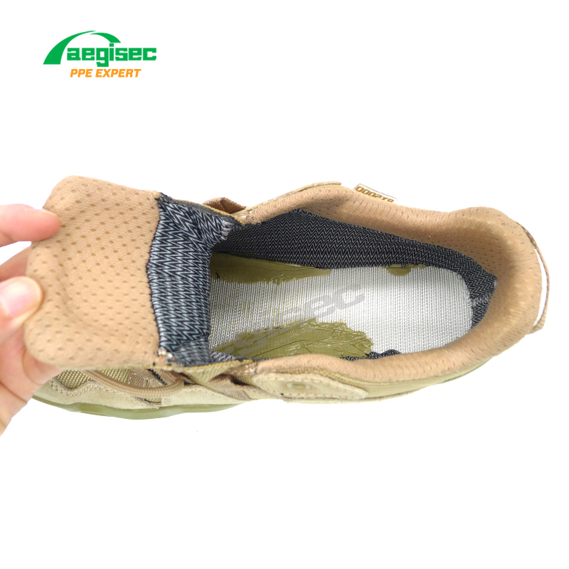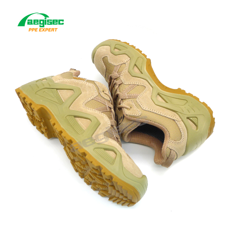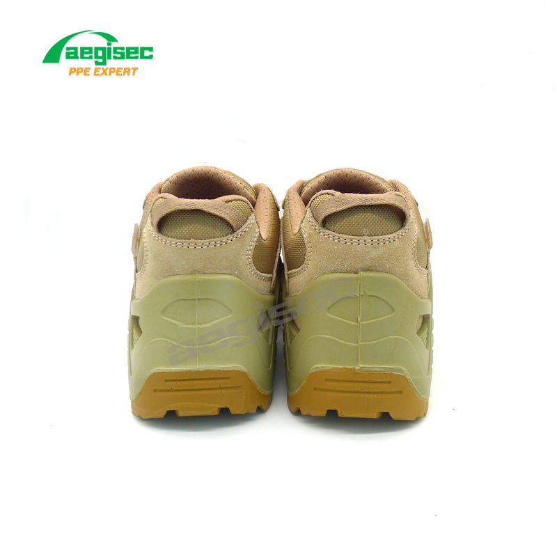Les chaussures tactiques AEGISEC sont dotées d'une semelle intermédiaire résistante aux perforations, qui offre une protection robuste contre les pénétrations tranchantes. La semelle extérieure antidérapante en PU SR assure une adhérence ferme sur les surfaces glissantes et complexes. Les chaussures sont conçues pour les militaires, les forces spéciales et les travailleurs de la sécurité publique pour l'entraînement et le combat.