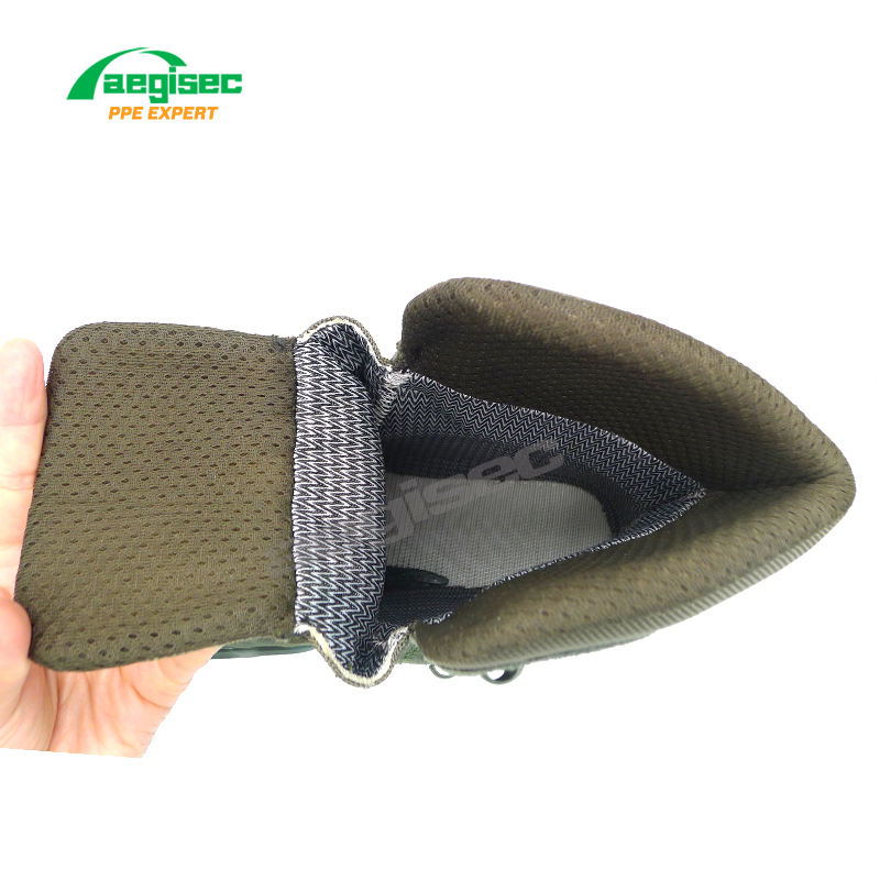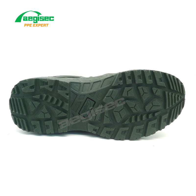 Les chaussures tactiques AEGISEC sont dotées d'une semelle intermédiaire résistante aux perforations, qui offre une protection robuste contre les pénétrations tranchantes. La semelle extérieure antidérapante en PU SR assure une adhérence ferme sur les surfaces glissantes et complexes. Les chaussures sont conçues pour les militaires, les forces spéciales et les travailleurs de la sécurité publique pour l'entraînement et le combat.
