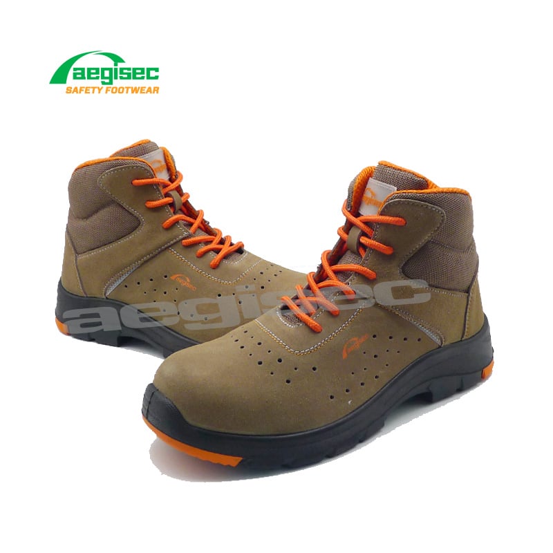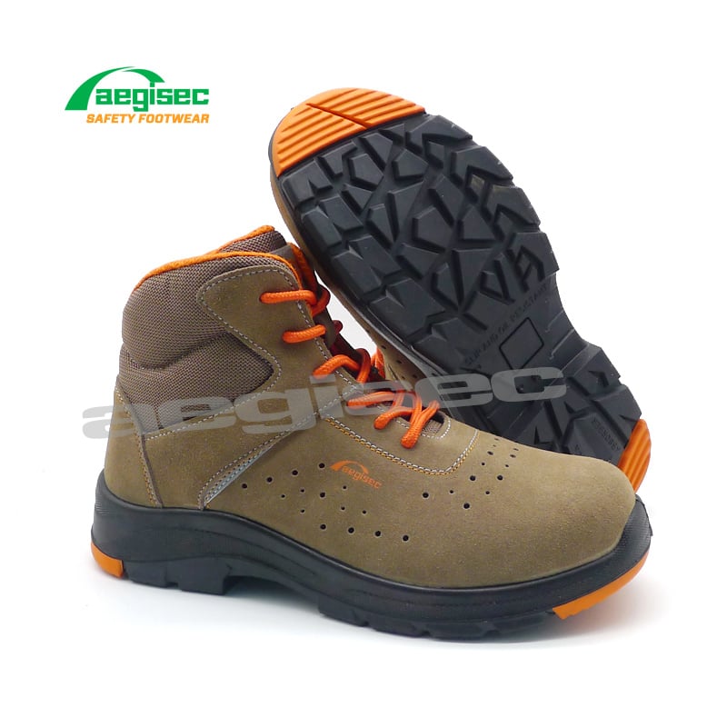 Рабочие ботинки AEGISEC средней высоты оснащены термостойкой резиновой подошвой, выдерживающей температуру до 300°C. С дышащим замшевым верхом, стальным носком и съемной стелькой. Идеально подходят для таких отраслей, как химическая, горнодобывающая, нефтегазовая и строительная.