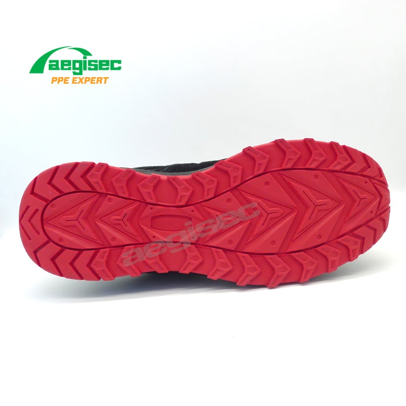 AEGISEC light weight fly knit sport safety shoes are with breathable suede+nylon upper and anti impact steel toe cap. The rubber outsole grants exceptional slip resistance, while resisting oil, fuel, chemicals, and extreme temperatures.