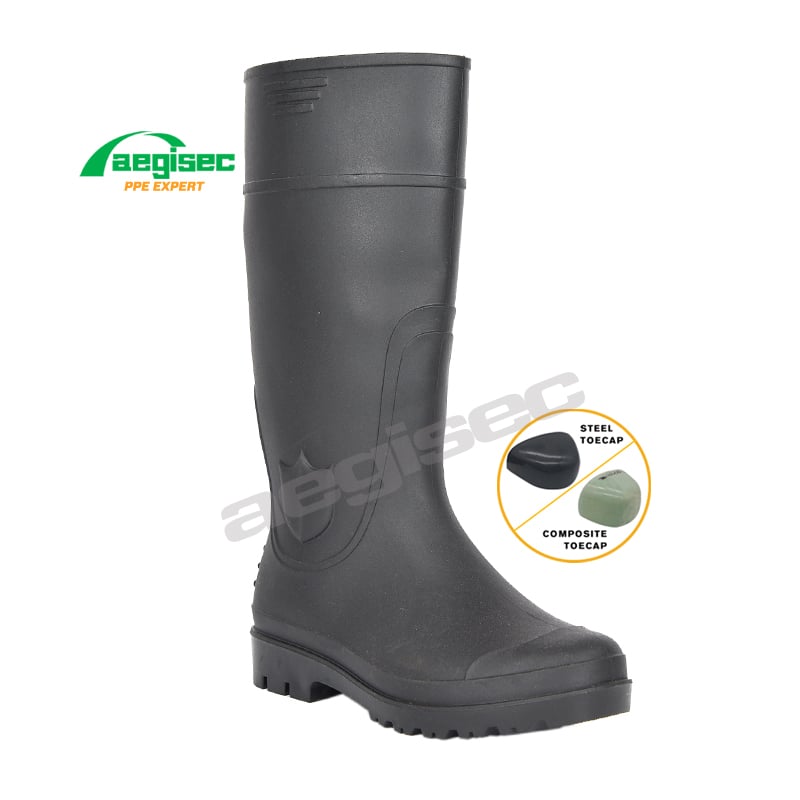 AEGISEC wellington work boots features with water resistant PVC upper and steel toe cap. The slip resistant PVC outsole provides good grip in most surfaces. This boot is perfect for animal husbandry, chemical and agriculture industries.