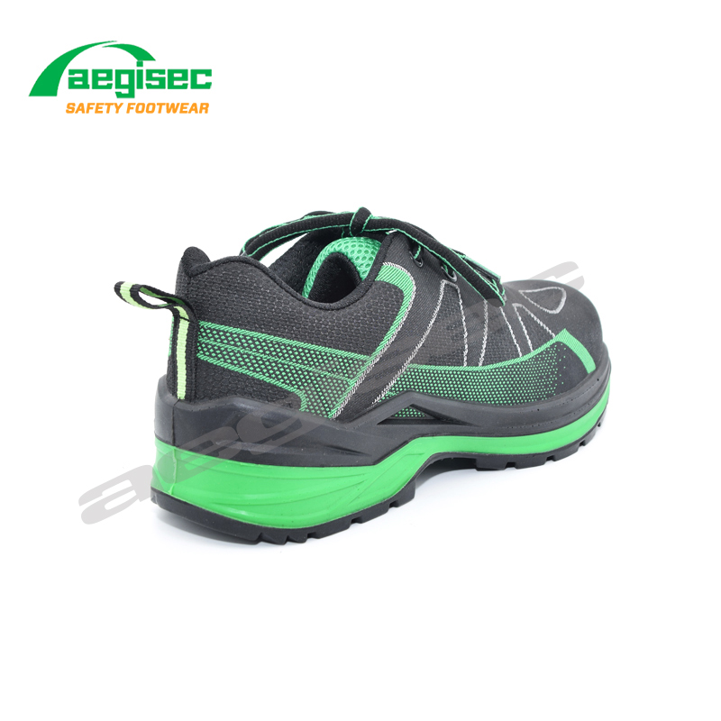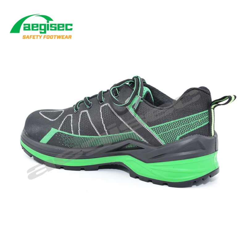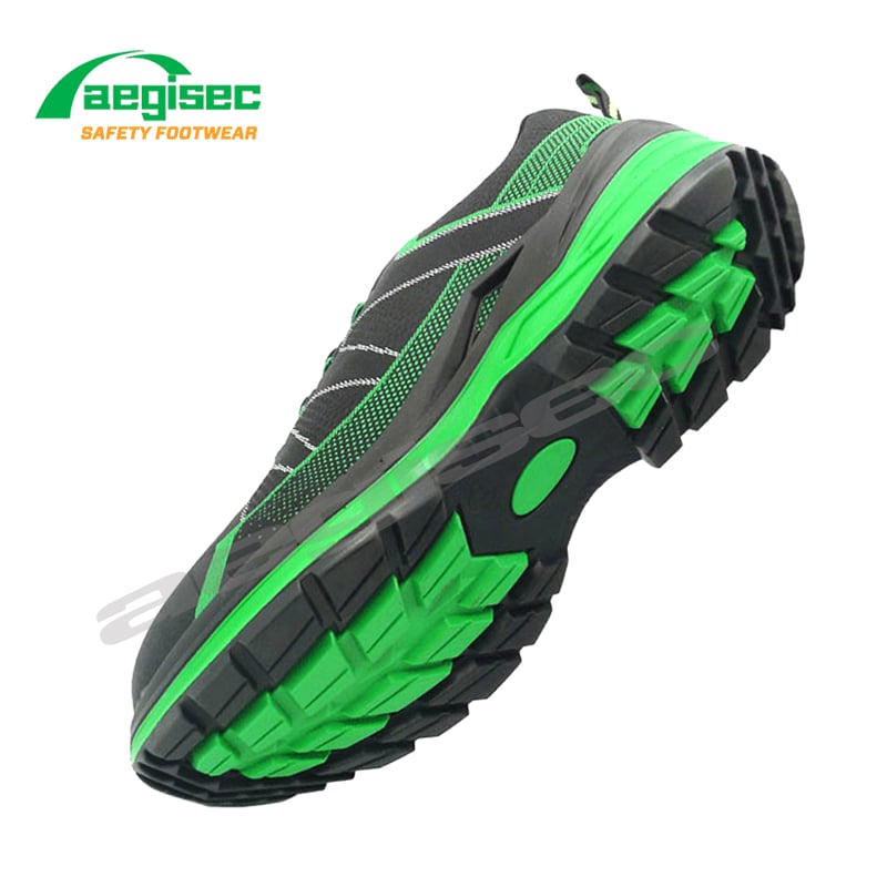 AEGISEC breathable fly knit sport safety shoes are with the anti impact steel toe cap. The rubber outsole grants exceptional slip resistance, while resisting oil, fuel, chemicals, and extreme temperatures.