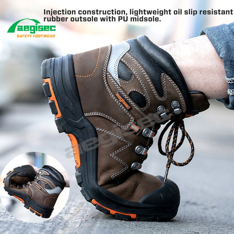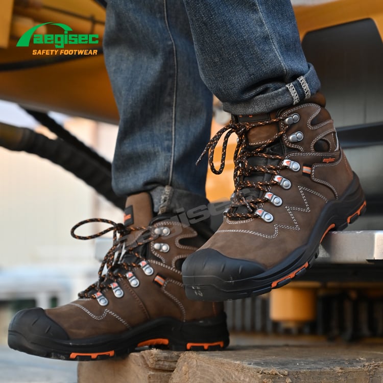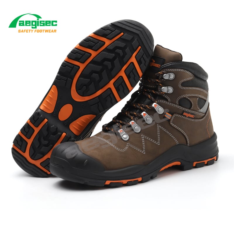 AEGISEC nubuck steel toe safety boots are engineered for high-risk environments such as mining, construction, oil & gas, and heavy industry. Featuring a durable nubuck leather upper, Kevlar puncture-resistant midsole, and a heat-resistant rubber outsole up to 300°C, these industrial work boots deliver superior protection, long-lasting durability, and all-day comfort in the toughest working conditions.