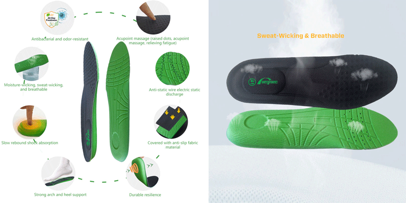 Replace standard insoles with: Antibacterial insoles |Sweat-absorbing materials